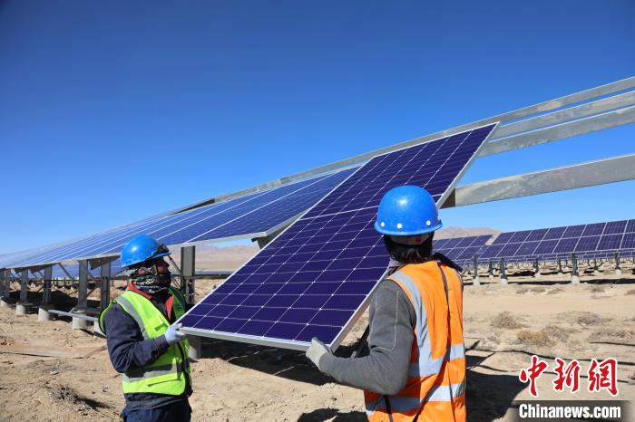 [中国新闻网]青海海拔最高风光基地:76个光伏子阵面积比肩663个足球场...